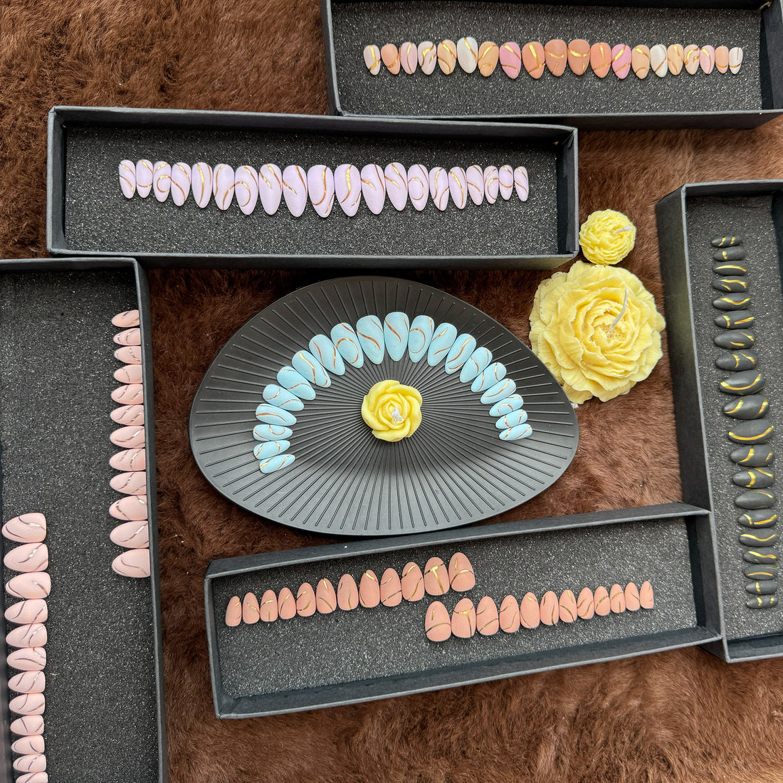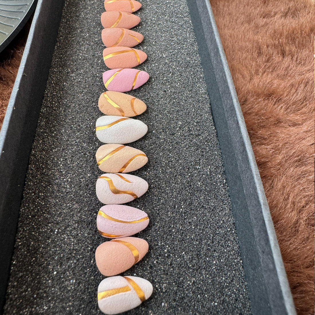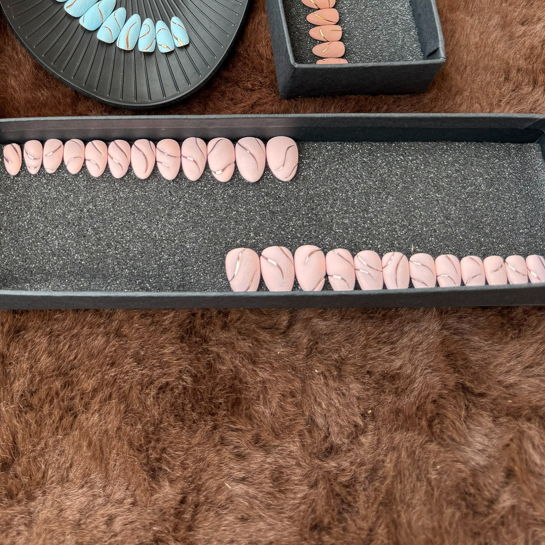 Indulge in elegance with our Pink Champagne Press-On Nails – where soft sophistication meets golden glamour. Featuring...