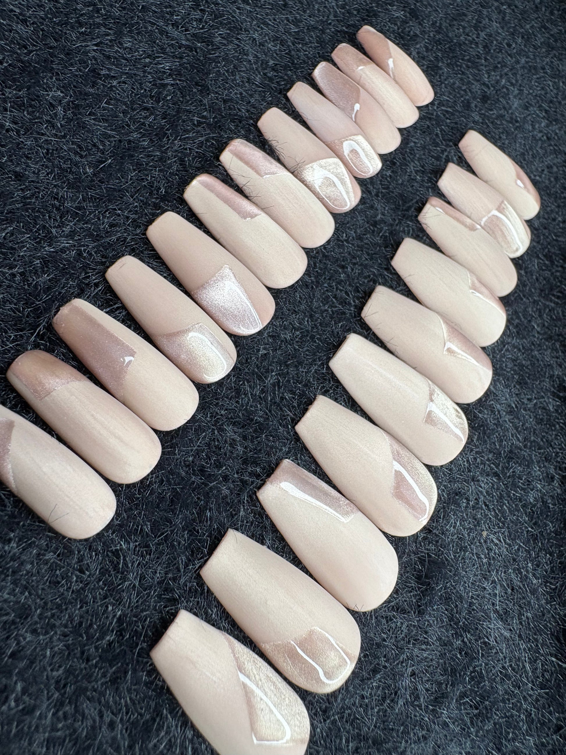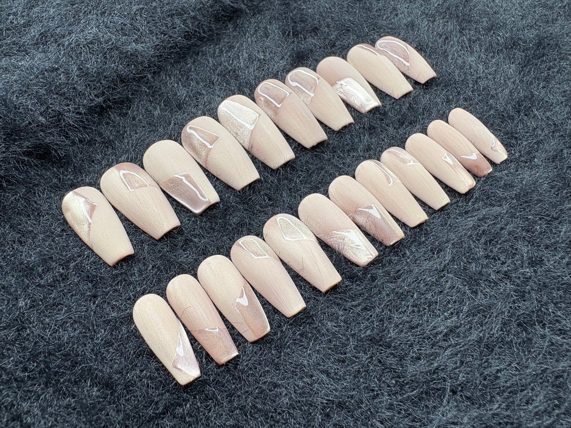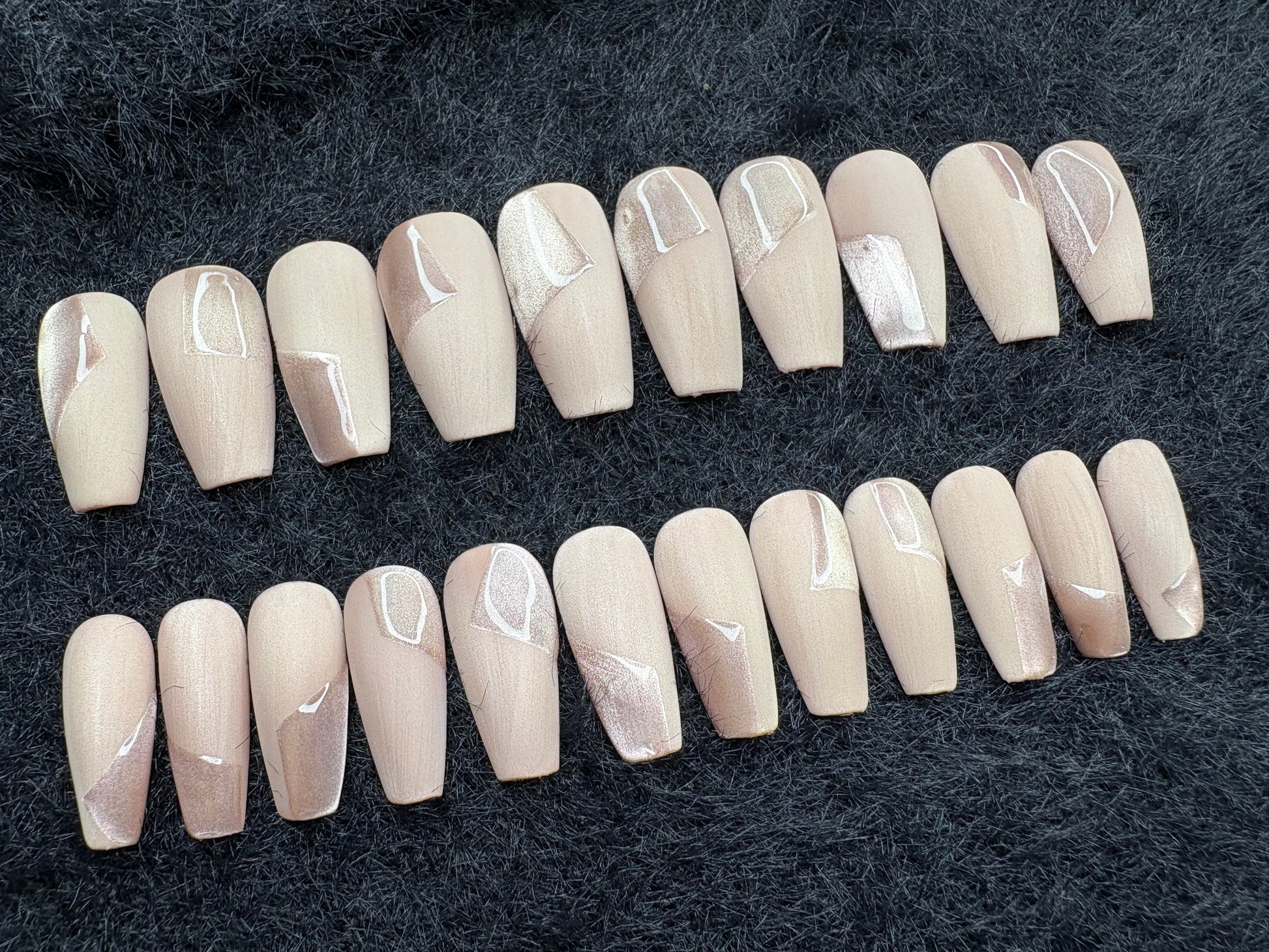 Embrace sophisticated minimalism with this stunning set of press-on nails. Featuring a flawless matte nude/taupe base, this set is the epitome of modern chic and effortless elegance.